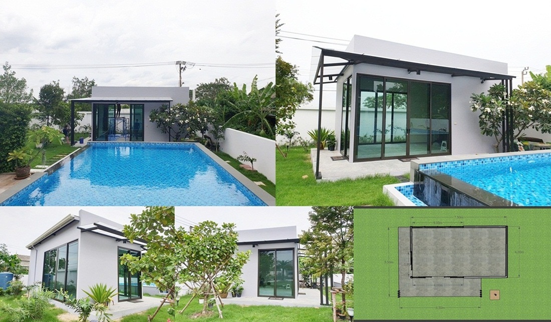 เป็นโครงสร้างเหล็ก ผนังกรุด้วยสมาร์ทบอร์ด พื้นห้อง พื้นห้องน้ำปูกระเบื้อง ตัวบ้านติดตั้งระบบไฟฟ้า ประปา สุขภัณฑ์