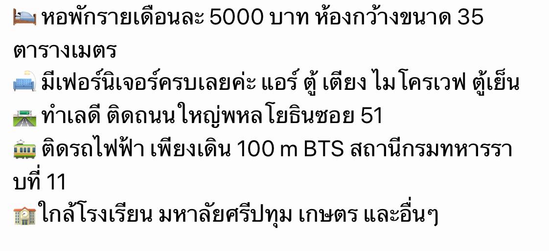 ห้องว่างให้เช่า ในทำเลดี ปลอดภัย ติดถนนพหลโยธิน เฟอร์นิเจอร์พร้อม