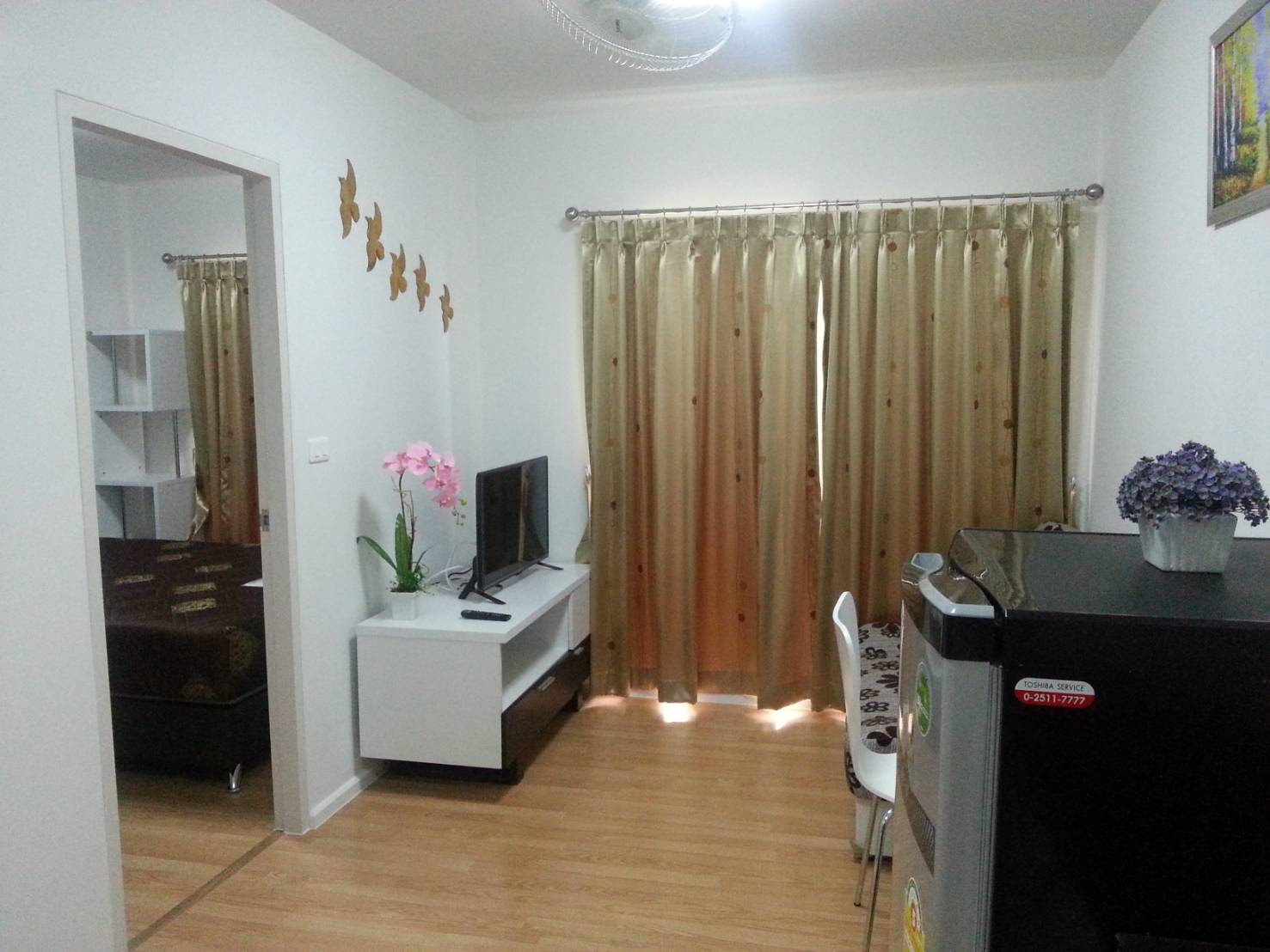 - พัดลมติดเพดานในห้องนั่งเล่น 1 ตัว