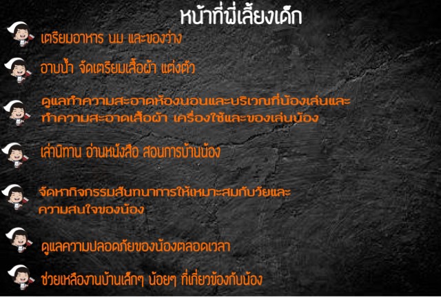 u ดูแลความปลอดภัยของน้องตลอดเวลาที่อยู่กับพี่เลี้ยง