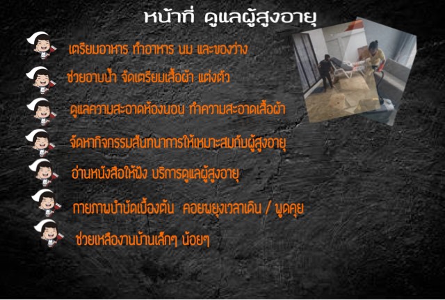 บริการดูแลผู้สูงอายุ / เฝ้าไข้ หน้าที่โดยสังเขป