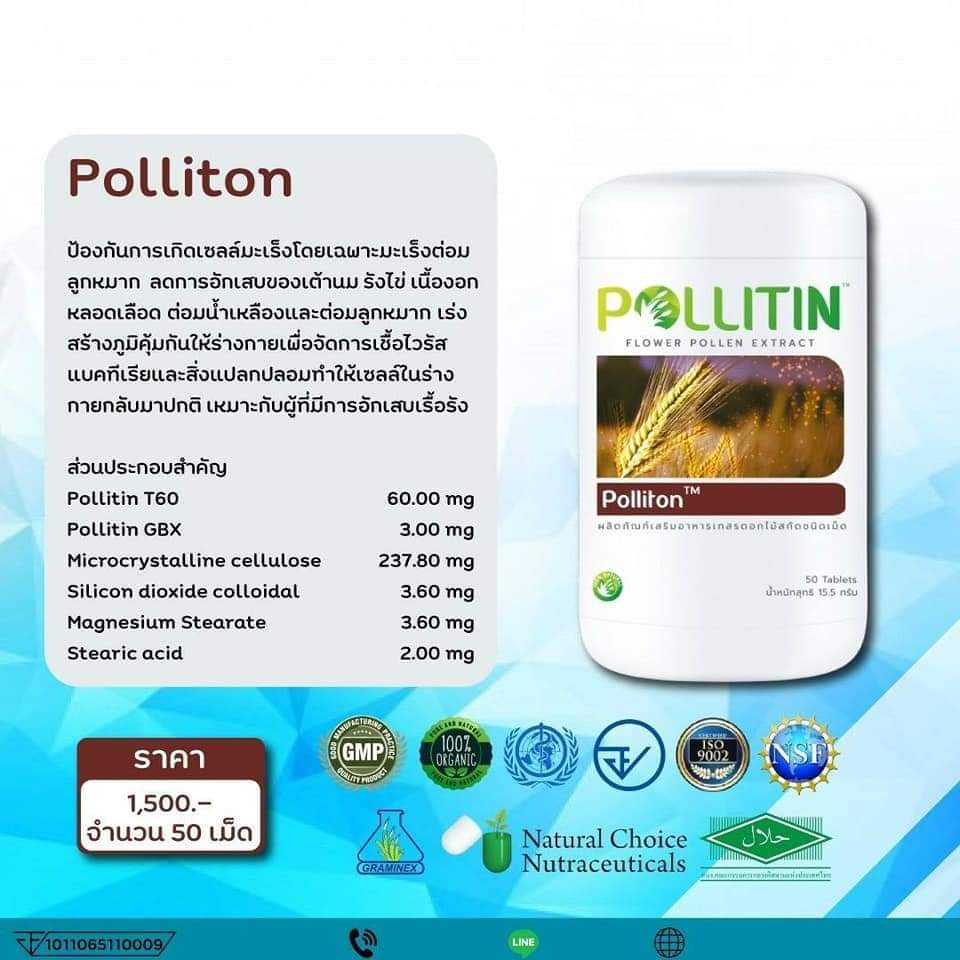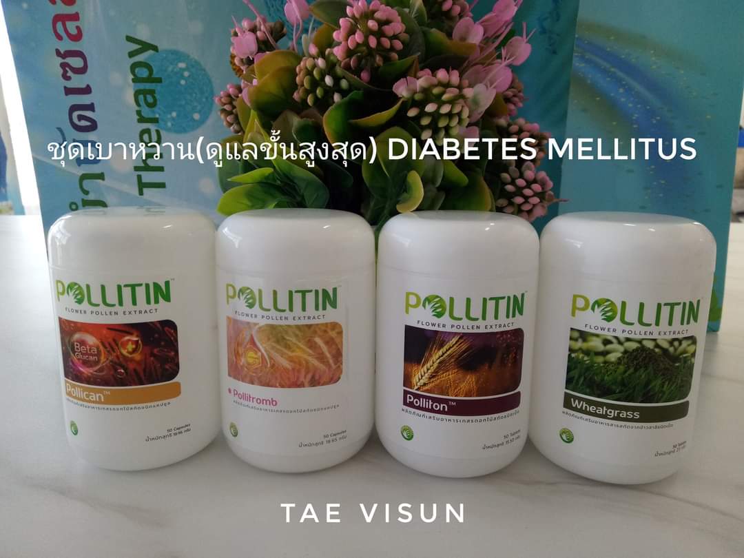 ถ้าท่านหมดหวังกับการรักษา และทานผลิตภัณฑ์อื่นแล้วอาการป่วยเบาหวานท่านไม่ดีขึ้นหรือยิ่งแย่ลง ทางร้านขออนุญาตแนะนำอาหารเสริมอีก 1 ชนิด เพื่อให้ท่านเปิดใจลองทานครับ ผลิตภัณฑ์ของเรามีการจำหน่ายไปแล้วกว่า 50 ประเทศ ใน 6 ทวีปทั่วโลก มายาวนานกว่า 50 ปี ได้รับมาตราฐานจากหลายสถาบัน ผลิตภัณฑ์ พอลลอติน Pollitin คือ สารสกัดละอองเกสรดอกไม้ ที่ช่วยบำรุงสุขภาพและบำรุงเซลล์ตับอ่อน ช่วยควบคุมระดับน้ำตาลในเลือด และลออาการแทรกซ้อน เช่น ทานพอลลิตินช่วยให้แผลที่เกิดกับผู้ป่วยเบาหวาน แผลแห้ง ผู้ป่วยจากที่หมอบอกว่าต้องตัดนิ้ว ไม่ต้องตัดนิ้วแล้วครับ