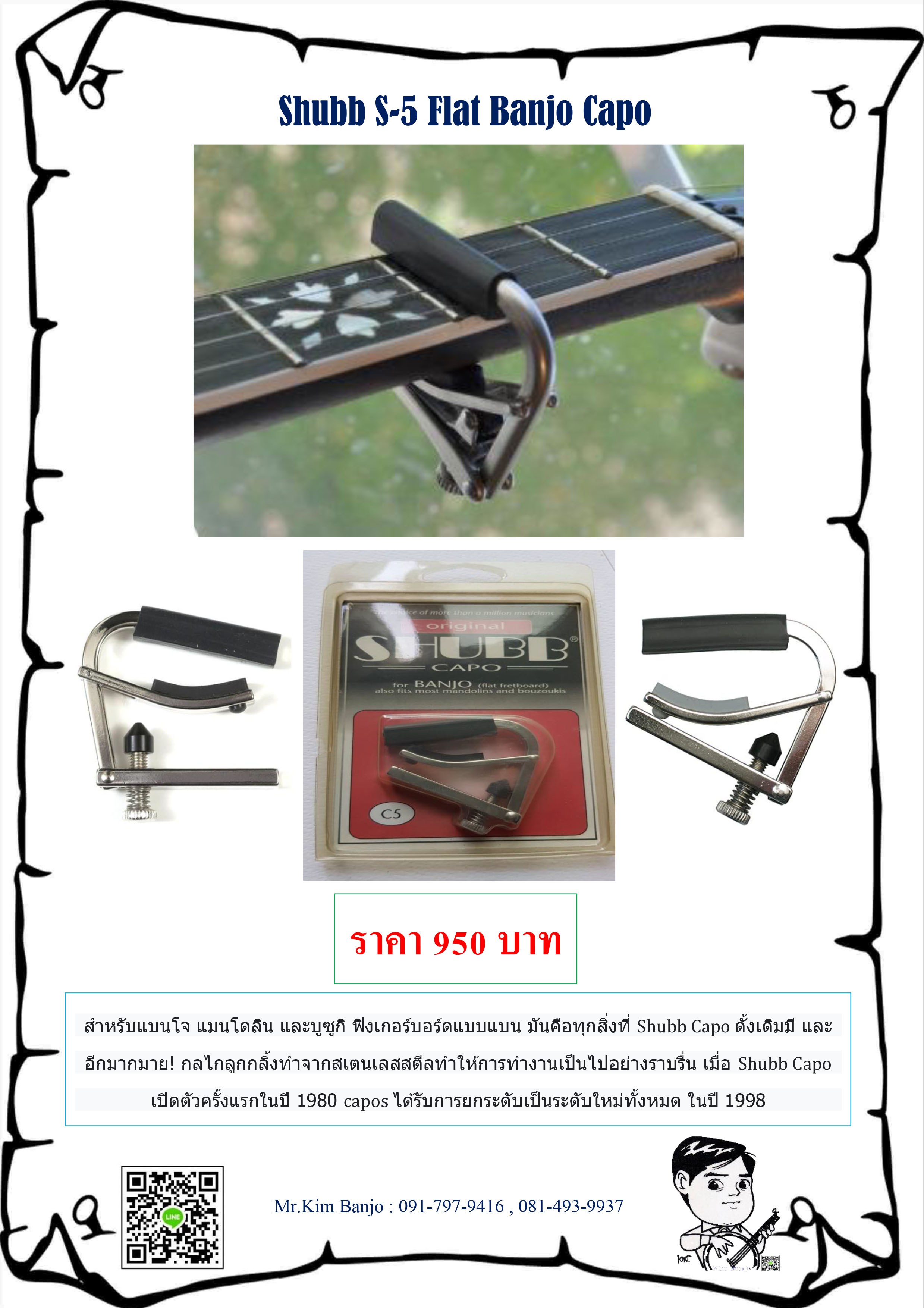 For banjos, mandolins and bouzoukis, flat fretboard.It's everything the original Shubb Capo is, and more! Crafted of stainless steel, its roller mechanism provides ultimately smooth operation. When the Shubb Capo was first introduced in 1980, capos were elevated to a whole new level. In 1998 the Shubb Deluxe pushed the envelope again. How could the original Shubb capo be improved?