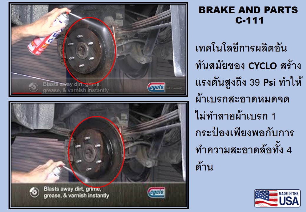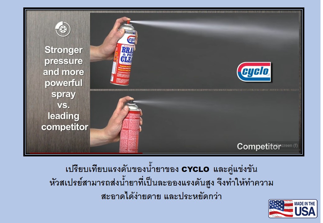 - เทคโนโลยีการผลิตอันทันสมัยของ CYCLO สร้างแรงดันสูงถึง 39 Psi ทำให้ผ้าเบรกสะอาดหมดจด ไม่ทำลายผ้าเบรก
