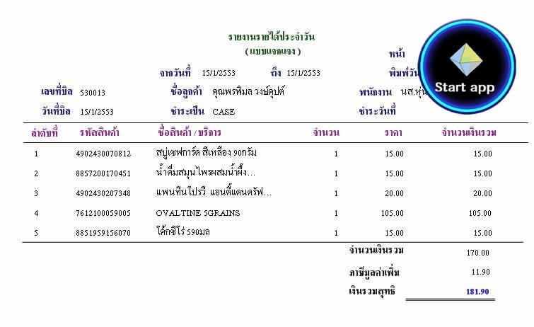 @ รายงานยอดขายสินค้าประจำวัน