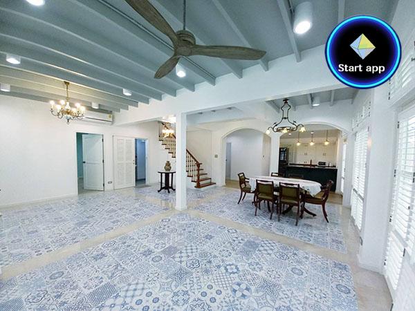 จำนวนห้อง : 4 ห้องนอน, 2 ห้องน้ำ, 1 ห้องน้ำแขก, 1 ห้องรับแขกและห้องทานอาหาร, 2 ห้องครัว, 1 ห้องแม่บ้าน, 1 ห้องเก็บของ, ที่จอดรถ 5 คัน