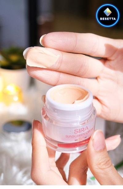 ซีร่า ซันสกรีน ครีม (SPF60 PA+++) ผลิตภัณฑ์กันแดดเนื้อมูส บางเบา ปกปิดเรียบเนียน ช่วยให้ผิวดูสว่างขึ้น 1 ระดับ และเพิ่มสารสกัดลดฝ้าเก่า