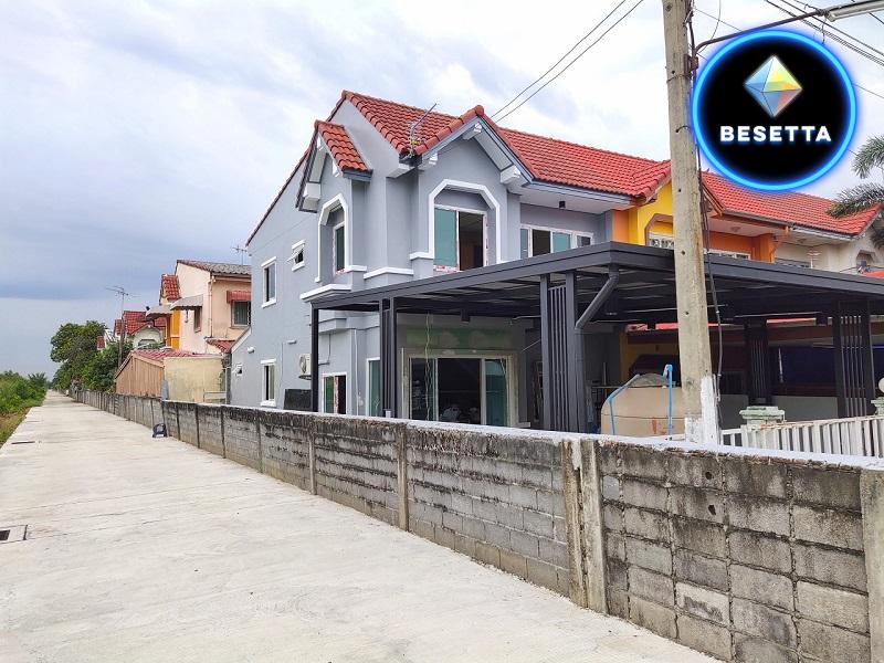 ให้เช่าทาวน์เฮ้าส์ 2 ชั้น เทียบเท่าบ้านเดี่ยว ม.แพรมาพรคลอง4 ธัญบุรี เนื้อที่ 42 ตร.ว. 4 ห้องนอน 2 ห้องน้ำ ห้องมุม รีโนเวทใหม่ทั้งหลัง