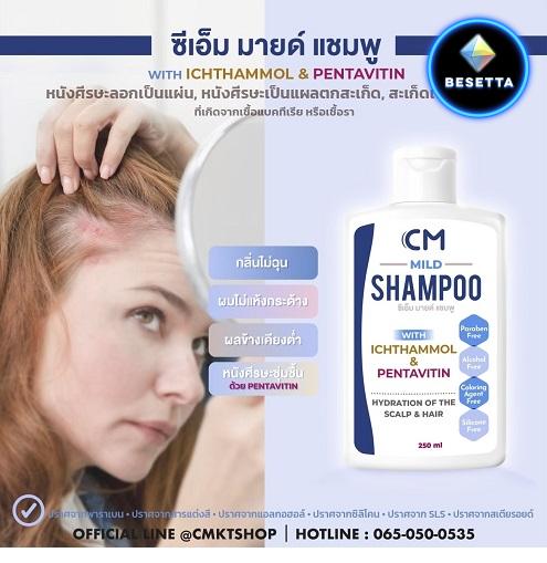 CM MILD SHAMPOO แชมพูลดปัญหาหนังหัวลอกเป็นแผ่น แห้ง คันมีส่วนผสมจากสารสกัดธรรมชาติ