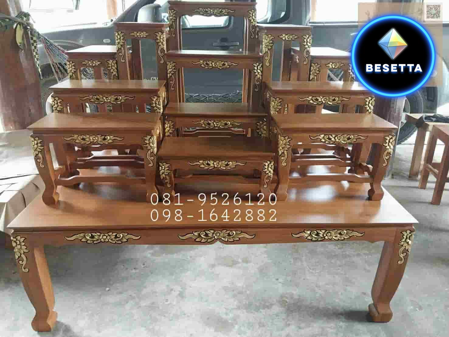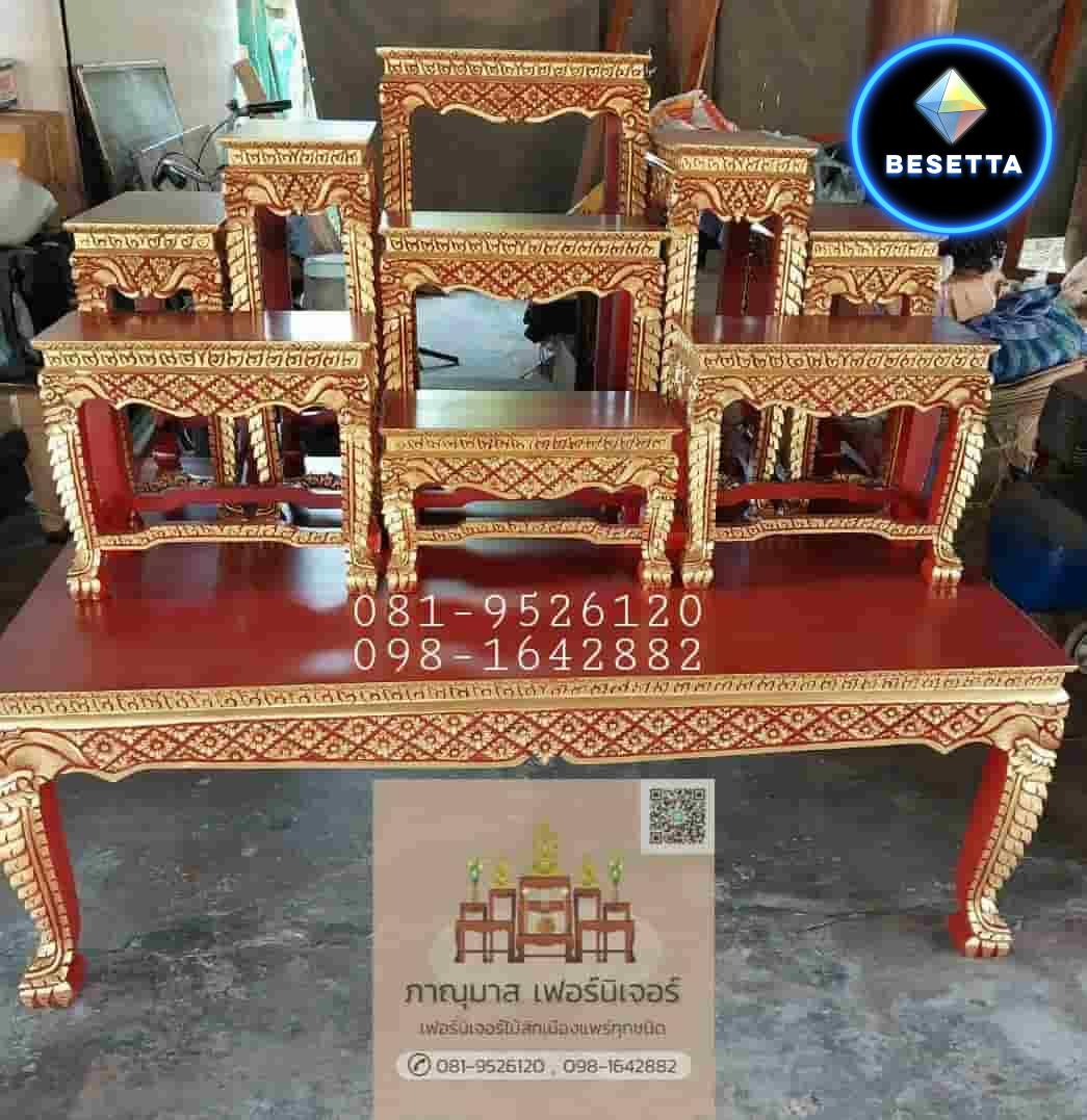 #ไม้สักพม่า #โต๊ะหมู่บูชาไม้สักโบราณ #ลายพิกุล #ลายดอกพิกุล #ภาณุมาสเฟอร์นิเจอร์