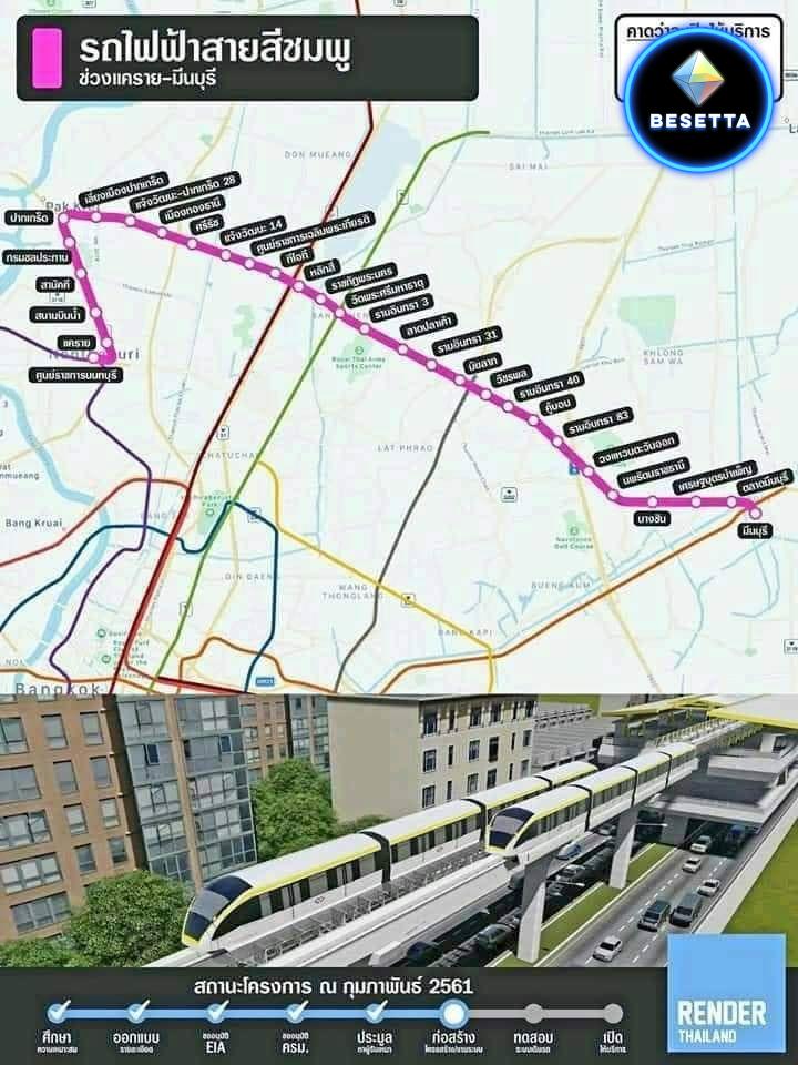 ปัจจุบันที่ตลาดปากเกร็ดกำลังก่อสร้าง รถไฟฟ้าสายสีชมพูไปแคราย ปากเกล็ด รามอินทรา มีนบุรี