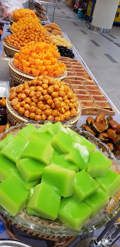 ???? ทองหยอด ,????ฝอยทอง,????ทองหยิบ????ทองหยิบ????มันสำปะหลังเชื่อม????ข้าวเหนียวแดง????มะพร้าวแก้ว????เผือกเชื่อม????เม็ดขนุนถั่ว-เผือก????ข้าวเหนียวตัดถั่วดำ????หม้อแกง????ขนมชั้น????ฟักทองสังขยา????วุ้นมะพร้าวน้ำหอม????บ้าบิ่น
