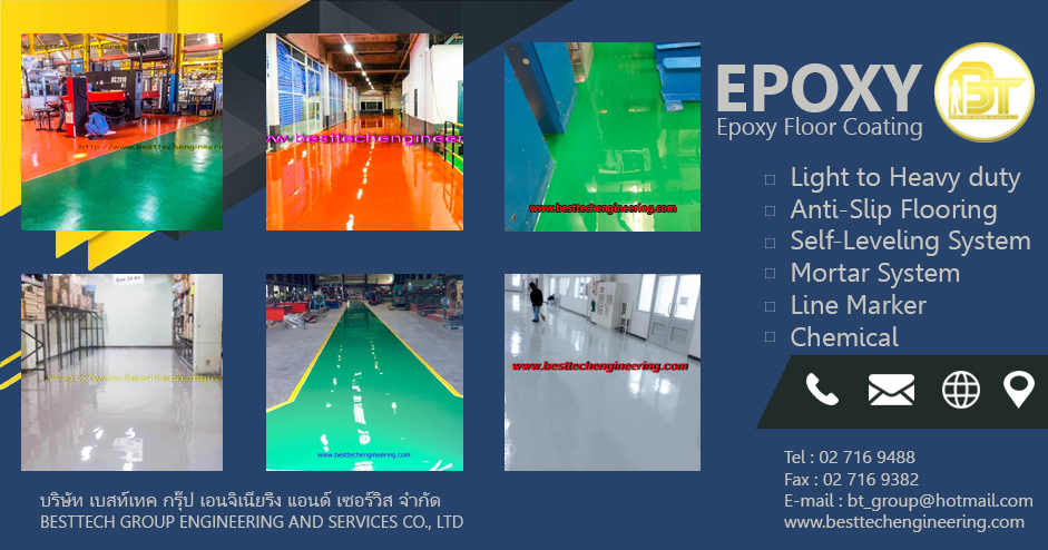 เราให้บริการเคลือบพื้นอีพ็อกซี่ Best Tech ให้บริการที่เป็นมืออาชีพด้วยทีมงานที่มีประสบการณ์และผ่านการอบรมทำให้เชื่อถือได้ในผลงานไม่ว่าจะเป็นงานเล็กหรืองานใหญ่เราสนองตอบได้ตามความต้องการเพื่อให้ลูกค้าทุกท่านมีความมั่นใจในการใช้งานงานเคลือบพื้น งานเคลือบโลหะ ติดต่อเรา สอบถามข้อมูล นัดเข้าดูหน้างาน