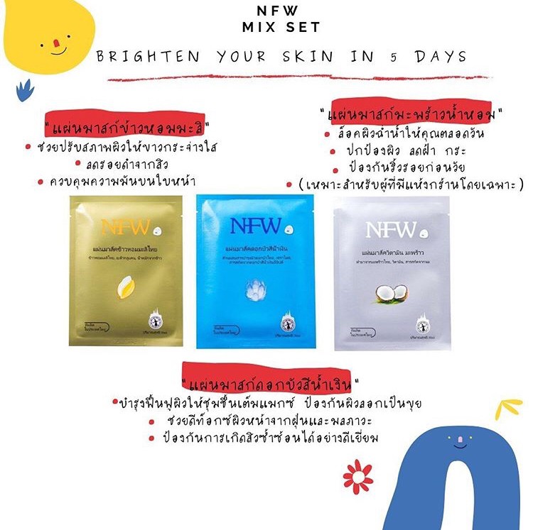 โปรดีต้องบอกต่อ ซื้อ 1 แถม 1 ในราคาแค่ 49 บาท สำหรับมาส์กหน้าแบรนด์น้องใหม่ NFW สกัดจากสารธรรมชาติ 100 % เหมาะกับทุกสภาพผิว ใช้ได้แม้ผิวแพ้ง่าย มี 3 สูตร ให้เลือกใช้