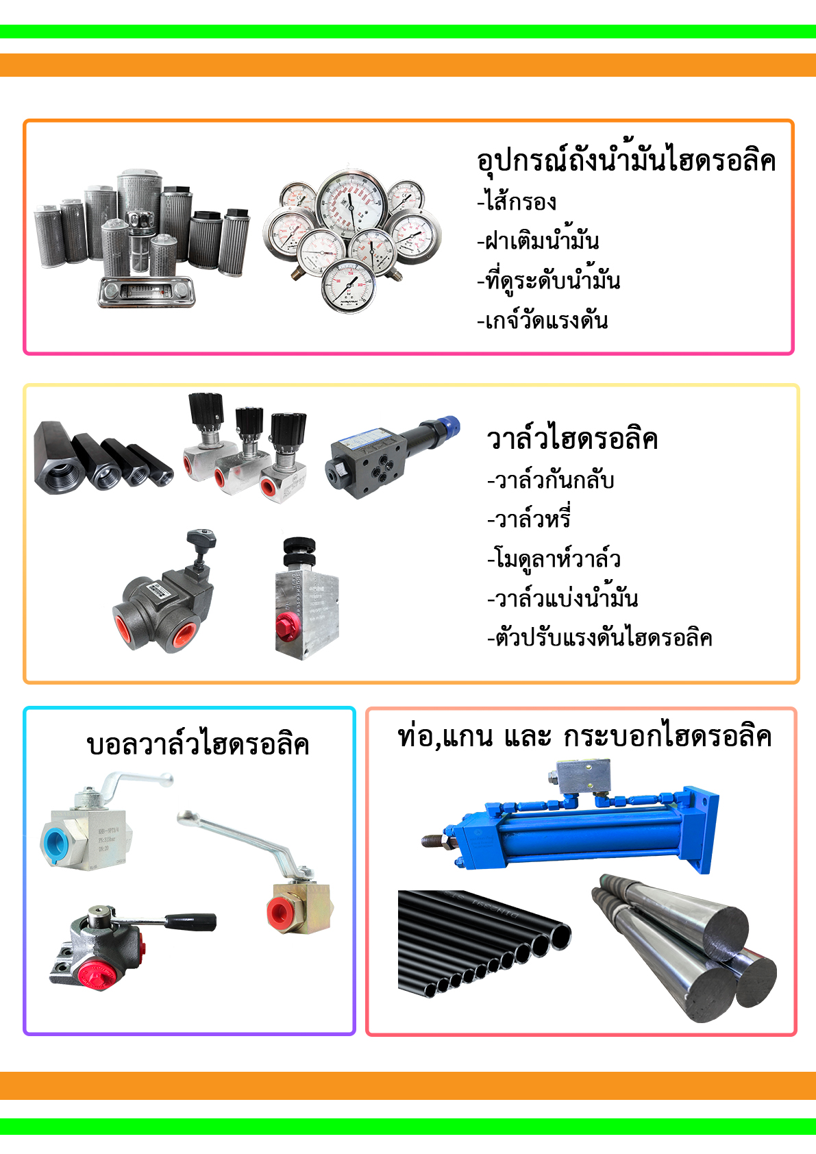 1.จำหน่ายอุปกรณ์ไฮโดรลิคอาทิเช่นยี่ห้อ NACHI,JEOU GANG ,CASAPPA,WALVOIL,OLEOSTAR,INTERMAGNUS,MAGNUM,HYSTAR,CEJN,ARON,M+S HYDRAULIC,AKON HYDRAULIC,CAPRONI HYDRAULIC, MAXMA hydraulic ,Oil Cooler Kamui,Coolbit เป็นต้นและรับเทียบสินค้า พร้อมทั้งออกแบบชุดต้นกำลังไฮดรอลิคส์,ชุดเพาเวอร์ยูนิคส์,ชุดไฮดรอลิคส์ เพาเวอร์แพค,อุปกรณ์เสริมประกอบชุดต้นกำลังและรับทำซัพเพลท