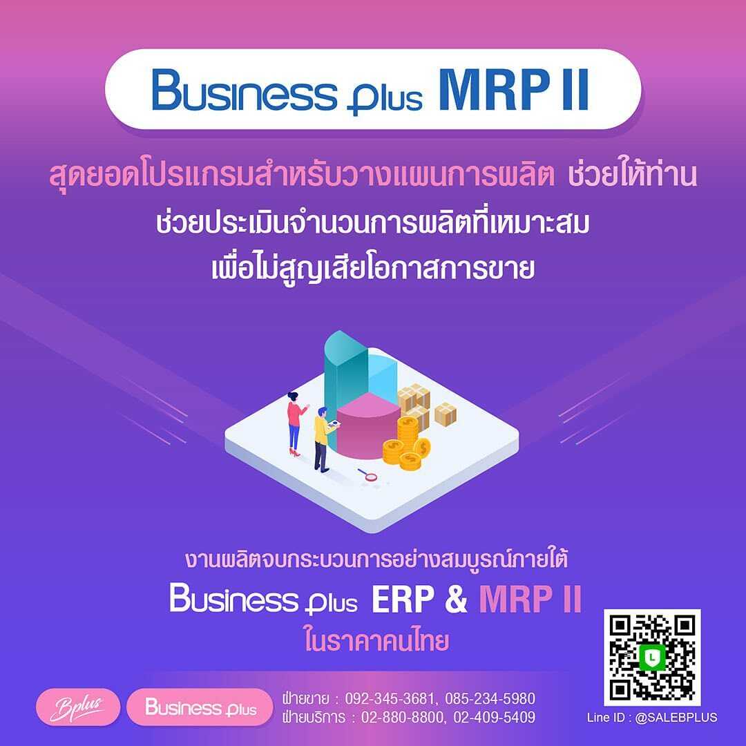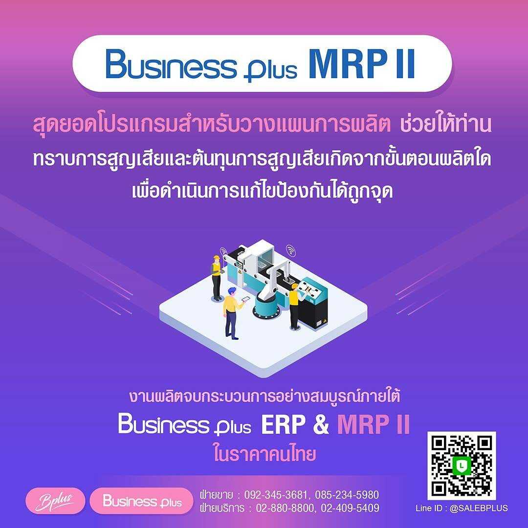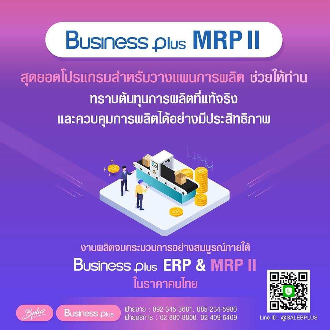 หลายๆ ท่านกำลังพบปัญหาว่า โปรแกรม ERP ที่ใช้กับโปรแกรม MRP เป็นโปรแกรม 2 ยี่ห้อ ฝ่ายบัญชีต้องคีย์เอกสารซ้ำ เพื่อนำมาปิดบัญชี คำนวณต้นทุน หรือบางกิจการต้องการโปรแกรมช่วยงานการผลิตก็มักจะพบว่าเป็นโปรแกรมต่างประเทศราคาสูงมาก ทำเรื่องยากให้เป็นเรื่องง่ายๆ ลดการสูญเสียไม่ว่าจะเป็นการจัดการเกี่ยวกับการคำนวณหาวัตถุดิบที่ต้องใช้ เพื่อที่จะนำไปผลิตสินค้าสำเร็จรูปหรือกึ่งสำเร็จรูป ให้ได้ครบตามจำนวนที่ต้องการจาก Sale Order หรือจากสูตรการผลิต/สูตรแปรรูป (BOM) เพื่อออกเอกสารใบสั่งผลิต ทั้งยังคำนวณอัตโนมัติว่าควรจะสั่งซื้อวัตถุดิบชนิดใดบ้างที่ไม่เพียงพอ  ข้อมูลทั้งหมดเชื่อมโยงกับระบบบัญชีบริหารสำเร็จรูป Business Plus ERP ทำให้สามารถปิดบัญชีได้ทันที ลดขั้นตอนการทำงาน ลดเวลาทำงาน ได้ผลวิเคราะห์อย่างรวดเร็วเพื่อผู้บริหาร