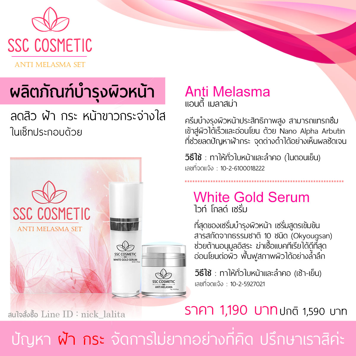 ผลิตภัณฑ์ฝ้า กระ จุดด่างดำ #ssccosmsteic