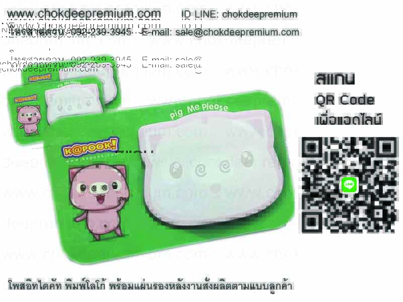 โรงงานทำโพสอิทพร้อมสกรีนโลโก้ เพื่อเป็นของพรีเมี่ยม ของสมนาคุณ ของแถม สินค้าแจกเพื่อส่งเสริมการขาย กระดาษโพสอิทพร้อมสกรีนโลโก้ ไดคัท ตัดเป็นรูปต่างๆ ไดคัทเป็นตัวการ์ตูน กระดาษโน้ตแบบมีกาวแปะได้ สามารถติดแล้วดึงออกไปติดที่อื่นได้ http://chokdeepremium.com/index.php?Content=product&id=2&id_run=1&view=yes มีรูปตัวอย่างสินค้าหลากหลายรูปแบบให้ท่านเลือกชม