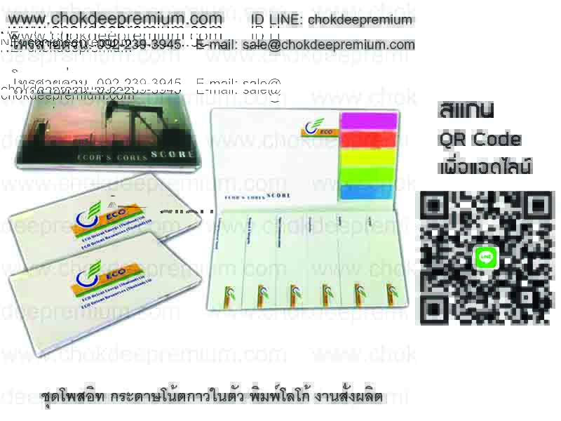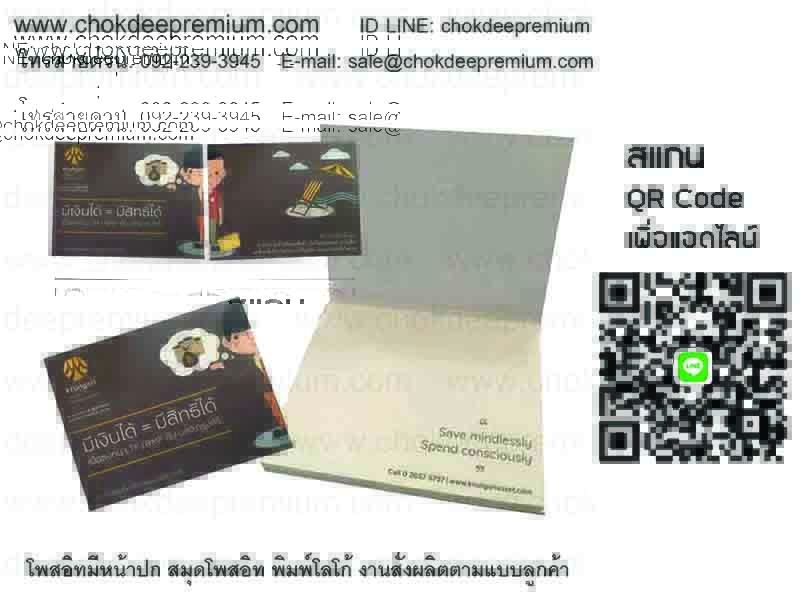 รับทำโพสอิทมีหน้าปกพิมพ์ลายตามแบบ ชุดโพสอิท โพสอิทเป็นเล่ม ด้านในมีหลายๆปึก โพสอิทพลาสติก โพสอิทใส สกรีนโลโก้ได้ทุกแผ่น ผลิตได้ตามแบบของท่าน เป็นงาน Made To Order ทางเรารับผลิตและจำหน่าย สมุดโน้ตโพสอิท post it notes, sticky note กระดาษโน้ตกาวในตัว สมุดโน้ตโพสอิท กระดาษมีกาวด้านหลัง พิมพ์โลโก้ หน้าปกของสมุดเป็นแบบปกกระดาษ ปกหนัง ปกผ้าไหม ปกพลาสติก PVC ปกกระดาษแข็ง ปกกระดาษหุ้มแข็ง ปกจั่วปัง หน้าปกกระดาษลัง ลูกฟูก กระดาษโน้ตกาวในตัวหรือกระดาษโพสอิท สามารถนำไปแปะหรือติดบนวัสดุอื่นๆได้ แปะแล้วสามารถดึงออกแล้วนำไปแปะที่อื่นได้อีกหลายๆครั้ง ใช้เพื่อจดบันทึก จดโน้ต และเพื่อเป็นการโฆษณาหรือทำการตลาด ส่งเสริมการขาย หรือโปรโมทสินค้า โปรโมทบริษัท องค์กรของท่านให้เป็นที่รู้จักมากขึ้น ท่านสามารถสั่งพิมพ์โลโก้ของบริษัท โลโก้องค์กร หรือข้อความต่างๆได้ตามที่ท่านต้องการ ของแจก ของขวัญ ของสมนาคุณ ของแจกงานออกบู๊ธ งานประชุม สัมมนา หรือในโอกาสต่างๆ ดูล้ำนำสมัย ดูดี ไม่ซ้ำใคร สินค้าพรีเมี่ยม แปลกใหม่ ทันสมัย โพสอิทพรีเมี่ยม โพสอิทมีหน้าปกนี้สามารถทำแบบปกปั๊มจม ปั๊มนูน สกรีนสีทอง ปั๊มฟรอยเงิน ฟรอยทอง เคลือบเงา เคลือบมัน เคลือบด้าน หรือจะเพิ่มความสวยงามโดยการเคลือบยูวี (UV Spot) ท่านสามารถออกแบบเองได้ ทางเรารับทำโพสอิทตามแบบของท่าน หน้าปกพลาสติก หน้าปกผ้าไหม อาจเพิ่มความหรูหราโดยการพิมพ์สีทอง สีเงิน ปั๊มทอง ปั๊มเงิน หรือสีฟรอยอื่นๆได้ตามที่ท่านต้องการ กระดาษโพสอิทตัดเป็นรูปต่างๆ สามารถทำโมลไดคัทเพื่อตัดโพสอิทหรือกระดาษโน้ตให้เป็นรูปต่างๆ เช่น โพสอิทรูปดาว โพสอิทรูปรถ กระดาษโน้ตรูปการ์ตูน โพสอิทตัดเป็นรูปที่ต้องการ นอกจากการผลิตโพสอิทแล้ว เพื่อความสวยงามและเพิ่มความหรูหรา กระดาษโน้ตโพสอิทนี้ยังสามารถทำกล่องใส่ เป็นชุดเซ็ทโพสอิทตั้งโต๊ะ กล่อง 3 มิติ ทำกระดาษโน้ตในกล่องรูปรถ กล่องรูปเครื่องถ่ายเอกสาร กล่องใส่โพสอิทจั่วปัง โพสอิทปฏิทิน ชุดกระดาษโน้ตโพสอิทตั้งโต๊ะพร้อมที่เสียบปากกา กล่องโพสอิทแบบพับได้ โพสอิทป๊อปอัพ โพสอิทแบบชุดพกพา กระดาษโน้ตโพสอิต พร้อมพิมพ์ สกรีน โลโก้บริษัท สโลแกน ข้อความโฆษณา ต่างๆ หรือสั่งทำเป็นโพสอิทแบบตั้งโต๊ะ ชุดโพสอิทตั้งโต๊ะ โพสอิทพร้อมกล่อง โพสอิทในชุดเซ็ทกระดาษโน้ต พร้อมที่เสียบปากกา แะคลิปหนีบกระดาษ หรือเครื่องเขียนต่างๆ โพสอิทสกรีนข้าง กระดาษโน๊ตสกรีนข้าง กระดาษก้อนสกรีนข้าง กระดาษโน๊ต 3 มิติ โพสอิทบรรจุกล่อง รับทำโพสอิทกล่องรูปรถ โพสอิทกล่องรูปเครื่องถ่ายเอกสาร รูปตึก 