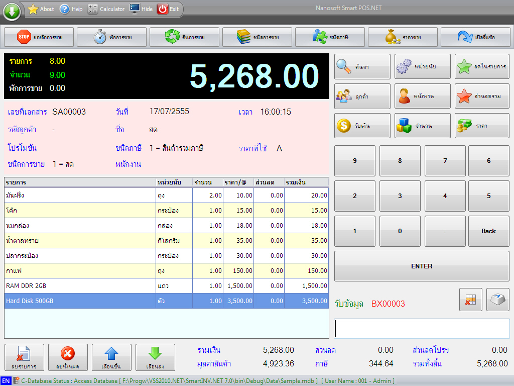 Nanosoft Smart INV.NET โปรแกรมสต๊อกสินค้า และ โปรแกรมขายหน้าร้าน (POS) มีความสามารถในการ ออกบิลขาย และ ขายหน้าร้าน (Point of sale) ที่ออกแบบมาสำหรับบริหาร ธุรกิจทั่วไป โดยส่วนประกอบหลักๆของ โปรแกรมขายหน้าร้าน และ โปรแกรมสต๊อกสินค้า จะประกอบไปด้วย ระบบการขาย แบบการเปิดบิลปกติ , ระบบ การขายหน้าร้าน (POS) ที่สามารถรองรับระบบ Tourch screen หรือ จอสัมผัส ในโปรแกรมเดียว สามารถขายได้ทั้งสองรูปแบบ และ นอกจากนี้ ยังมี ระบบ การจัดซื้อ (P/O) , ระบบ สินค้าคงคลัง (Inventory) , ระบบ เจ้าหนี้ (A/P) , ระบบ ลูกหนี้ (A/R) , ระบบ การเงิน และ ระบบ การออกเอกสาร ต่างๆ อาทิเช่น ใบเสร็จรับเงิน , ใบกำกับภาษี เป็นต้น รองรับการทำงานผ่าน Inetnet cloud และ สามารถเชื่อมต่อกับจอภาพแบบ Touch screen , ลิ้นชักเก็บเงิน , เครื่องอ่านบาร์โค๊ด , เครื่องชั่งน้ำหนักดิจิตอล