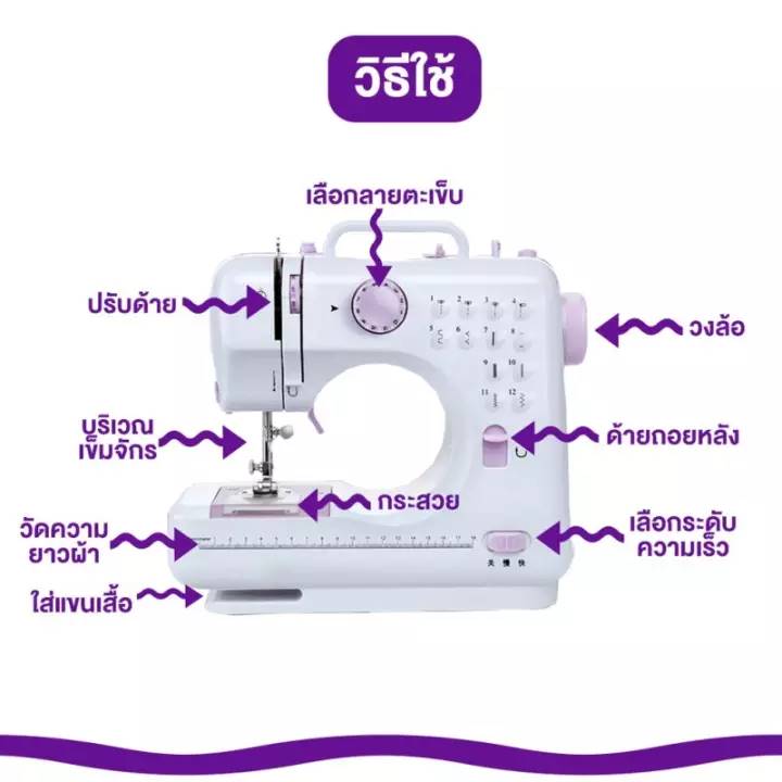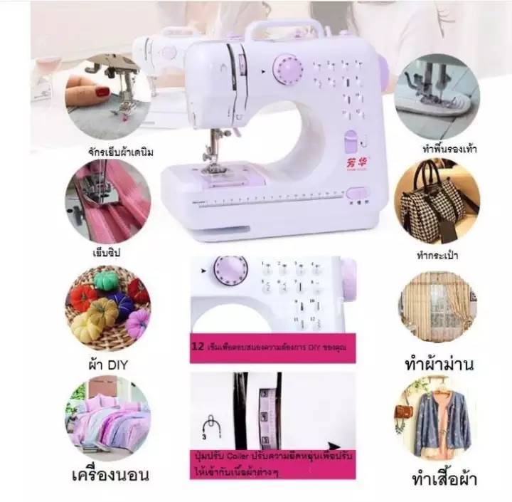 จักรเย็บผ้าไฟฟ้าไร้สาย ระบบด้ายคู่ 12 ตะเข็บ ปรับความเร็วได้ 2 ระดับ