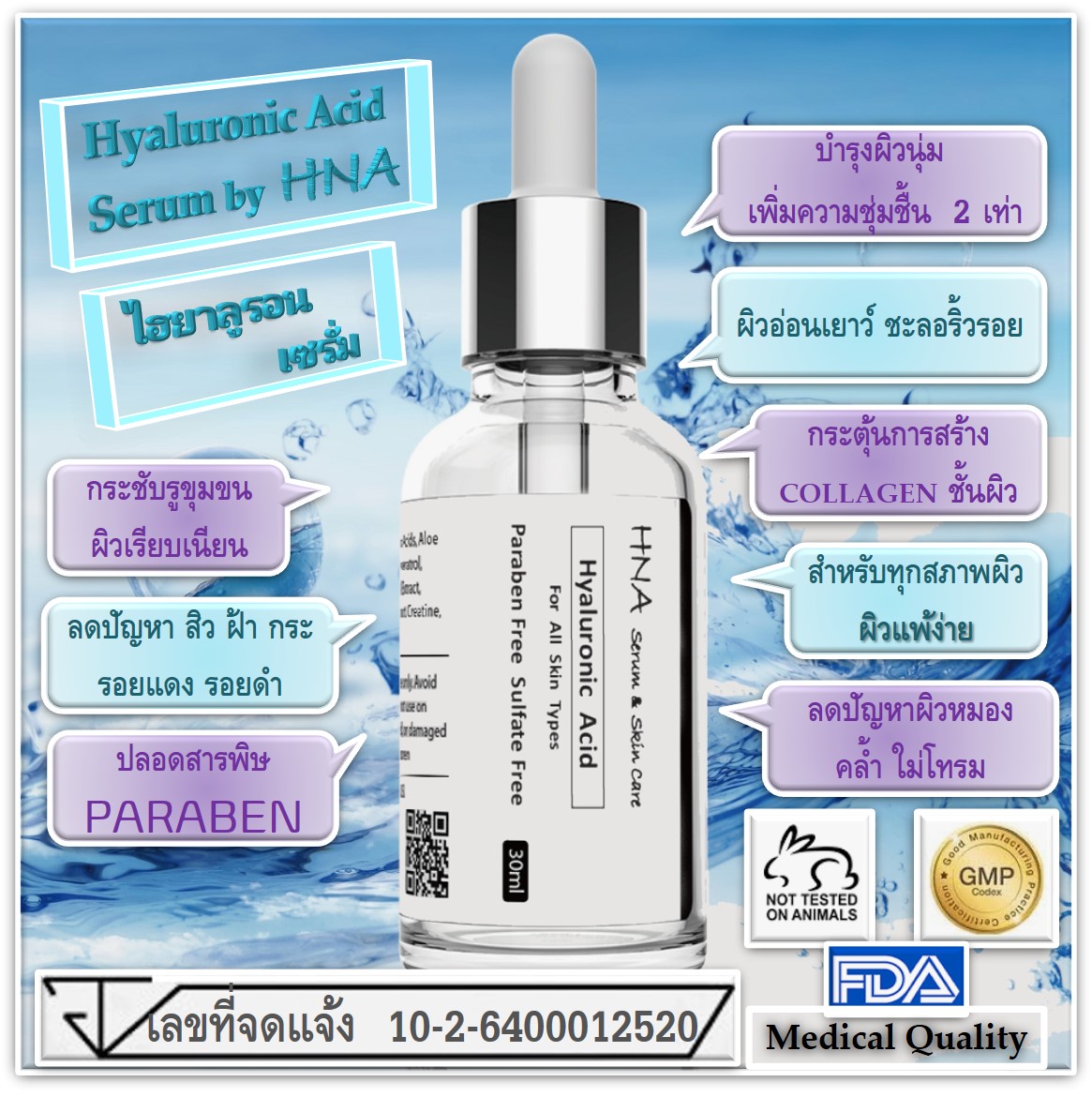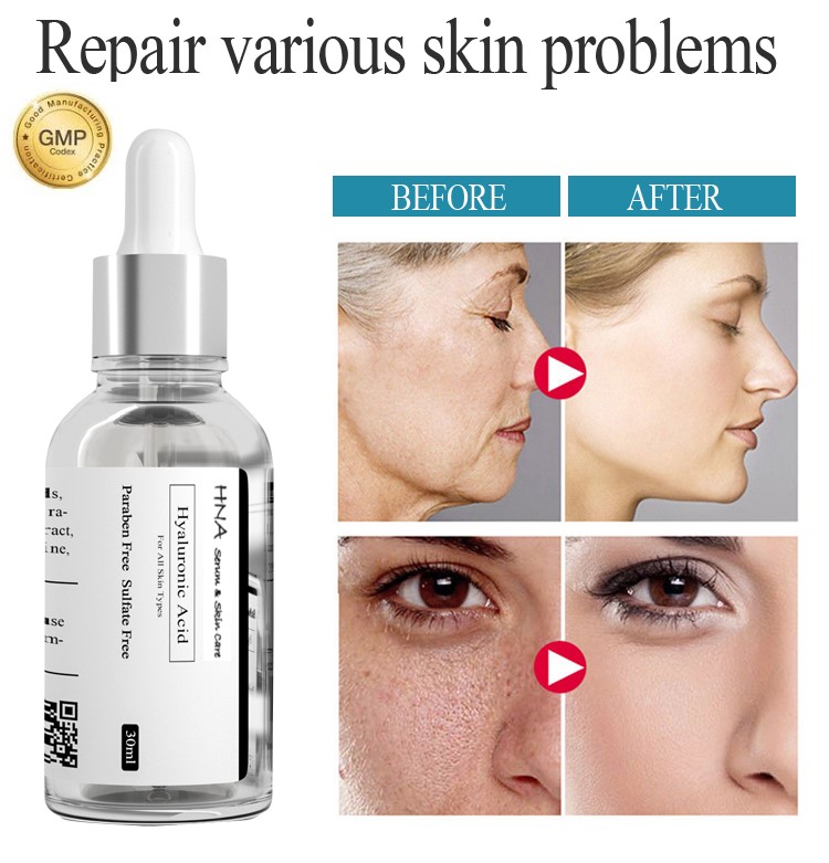 '' สำหรับทุกสภาพผิว '' '' Paraben Free Sulfate Free '' ต่อต้านริ้วรอย จุดด่างดำจางลง เซรั่มกรดไฮยาลูโรนิกบริสุทธิ์สำหรับใบหน้าที่
