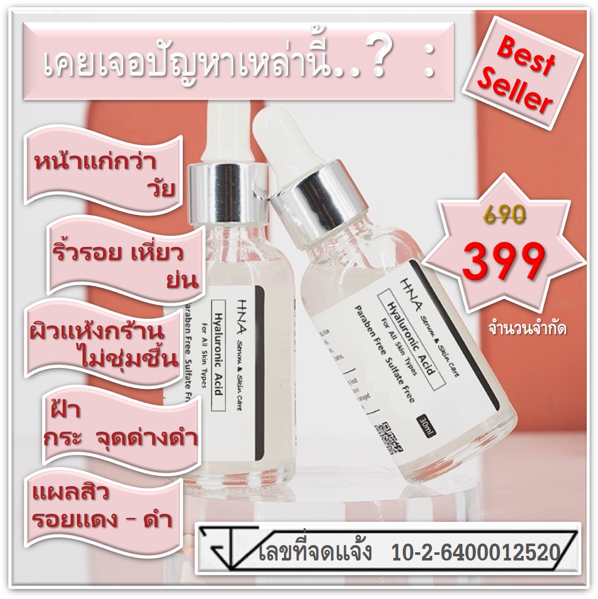 ลดริ้วรอยเหี่ยวย่น หน้าใส เก็บความชุ่มชื้น กระตุ้นการสร้างcollagen ชะลอการแก่ก่อนวัย