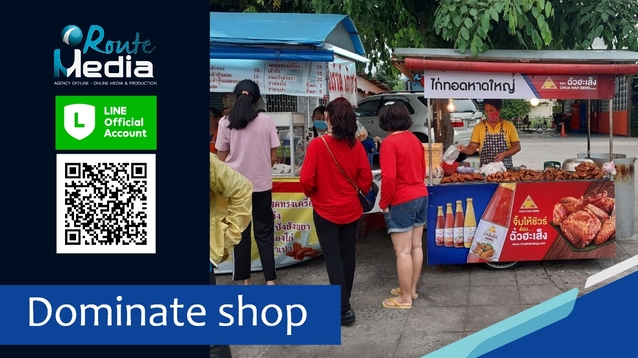 สื่อประชาสัมพันธ์ติดรถเข็นขายของ (Dominate shop)  หรือการทำสื่อโฆษณา ณ จุดขาย ตกแต่งรถเข็นเพื่อเพิ่มความสวยงามของรถเข็นหรือร้านค้า และตอกย้ำการใช้ผลิตภัณฑ์ เพื่อเพิ่ม Brand Awareness ให้กับผลิตภัณฑ์มากยิ่งขึ้น