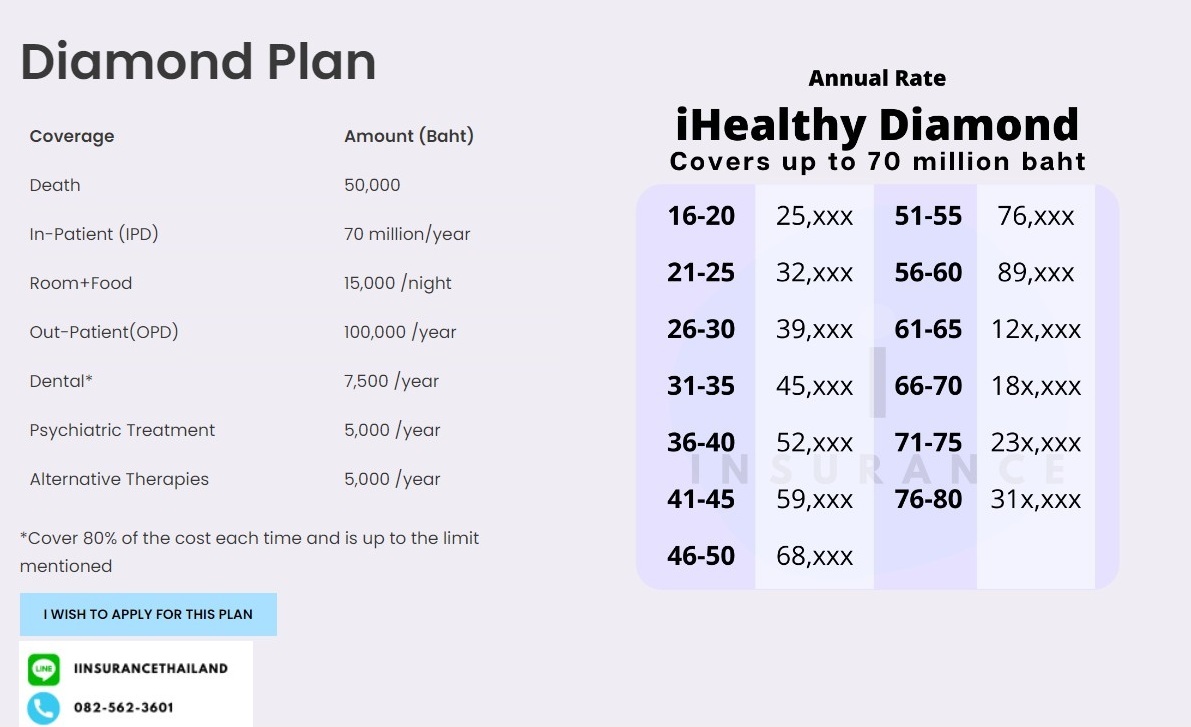 treatment up to 200,000 THB per year (Diamond, Platinum)