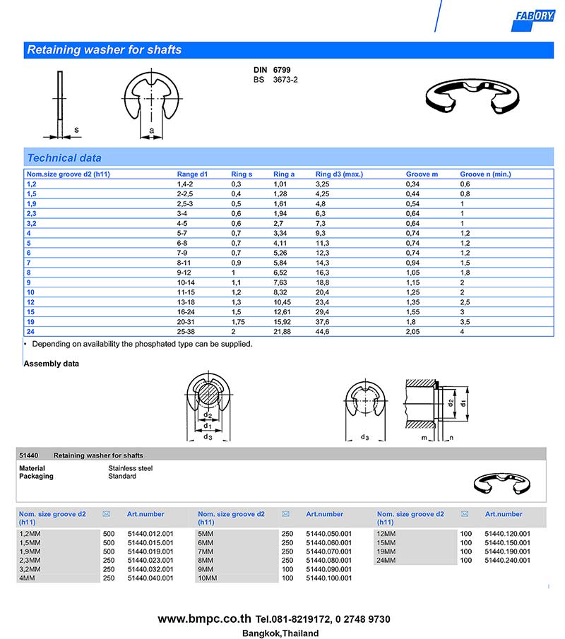 Retaining washer for shaft (E Ring) DIN6799, 1.2-24 mm. (แหวนล๊อกตัวอี)