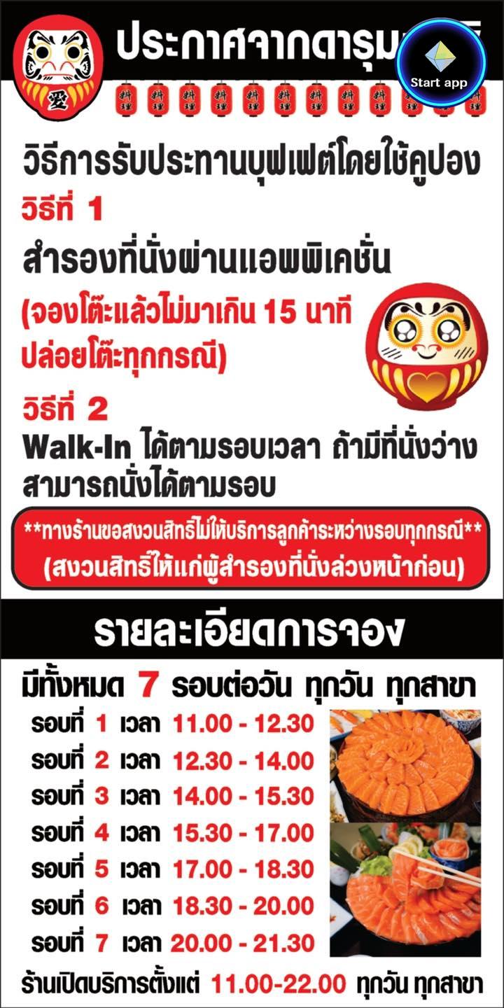 (บริการรับจอง สำรองที่นั่งให้คุณลูกค้าค่ะ)** เพื่อความสบายใจของคุณลูกค้า ไม่มั่นใจกดสั่งซื้อผ่าน shopee ได้ค่ะ **** https://shopee.co.th/lv.magics/4683673591 **E-Voucher ทานบุฟเฟ่ต์อาหารญี่ปุ่นที่ร้าน Daruma Sushi ราคา 299 บาท จากปกติราคา 499 บาท!** เวลาทาน 1.30 ชม. **** หมดอายุ 30/07/2022 **** บัตรกำนัลเป็น E-Voucher ส่งให้ทางแชทนะคะ **Daruma Sushi ร้านอาหารญี่ปุ่นชื่อดัง มี 19 สาขาทั่วกรุงเทพฯ เลยค๊าฟฟ ...สนใจ สอบถามเพิ่มเติม ทักมาเลยจ้าLINE ID : LV.MagicsLINE@ : @drd2996uTel. 094 793 9793