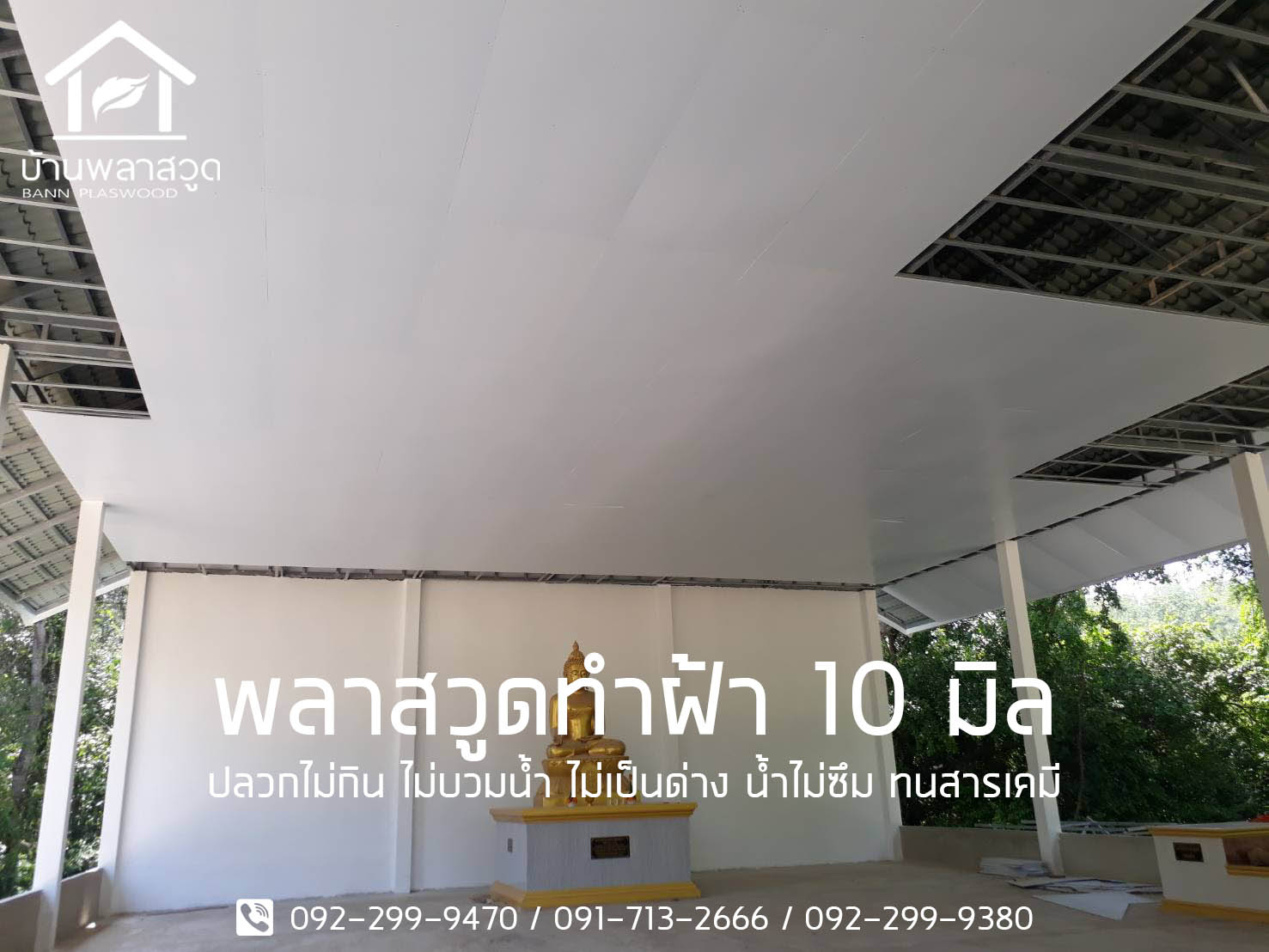 -ทำฝ้าแทนแผ่นยิบซั่ม ฝ้าพลาสวูด ไม่ด่างน้ำ